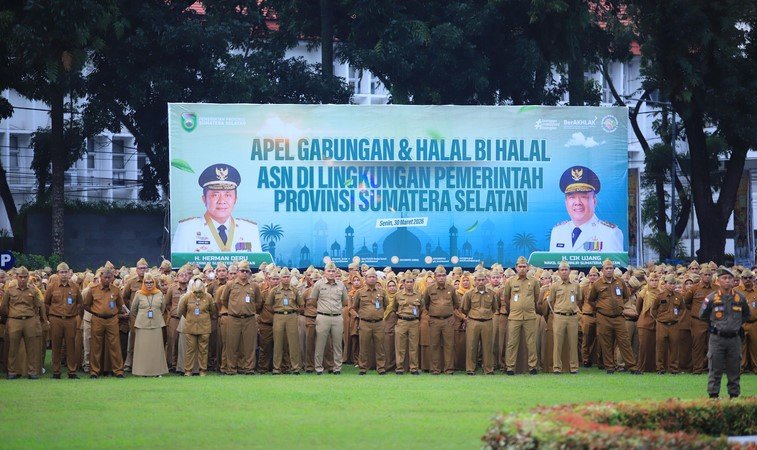 Penegasan tersebut disampaikan saat apel gabungan dan kegiatan halal bihalal Pemprov Sumsel Tahun 2026/1447 Hijriah yang digelar usai libur panjang Idulfitri di Palembang, Senin (30/3/2026) pagi.
