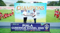PALEMBANG | Globalsumatera.co — Gubernur Sumatera Selatan (Sumsel), H. Herman Deru, secara resmi menutup Turnamen Sepak Bola antar Organisasi Perangkat Daerah (OPD) di Stadion Bumi Sriwijaya Palembang. Acara ini sekaligus menjadi momen pembukaan Kejuaraan Piala Gubernur U-15 se-Sumsel.